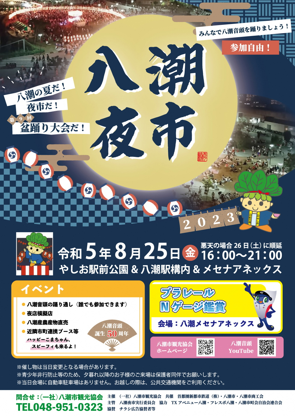 - ・内 容:盆踊り大会、模擬店、縁日コーナー、八潮産農産物直売、プラレール・Nゲージ鑑賞など