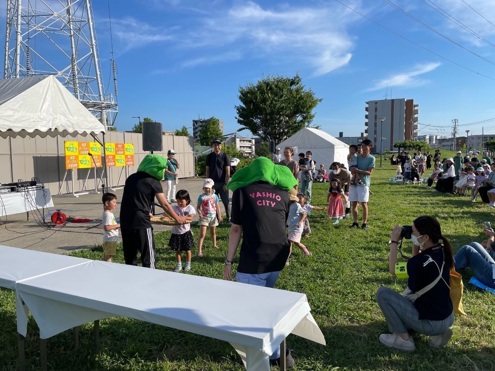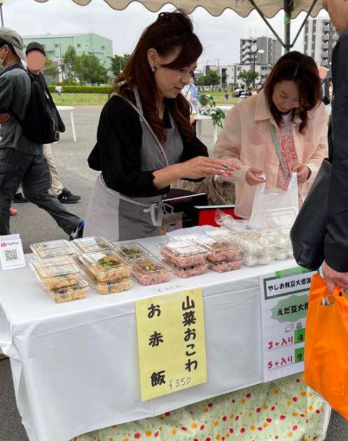 約3,500人の方が来場され、枝豆の試食会や農産物即売会、模擬店などのほか、音楽ライブやパフォーマンス、ミニゲーム『やしお えだまめ うまい』などを楽しんでいました。