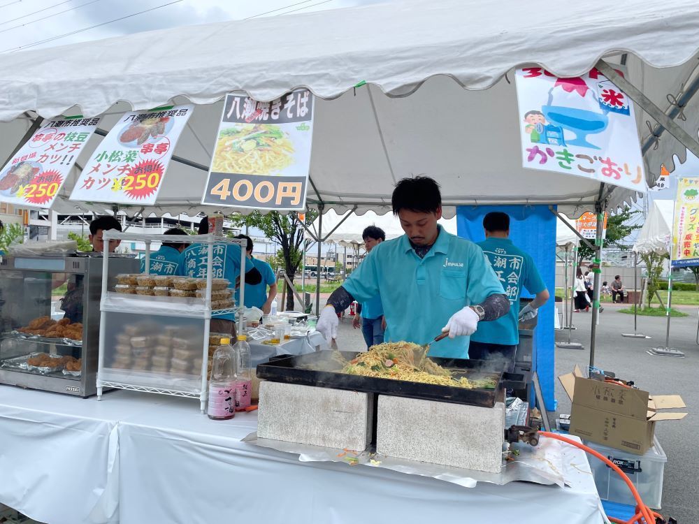 また、枝豆の販売や小松菜メンチカツ、八潮焼きそばなどのグルメも大人気でした。