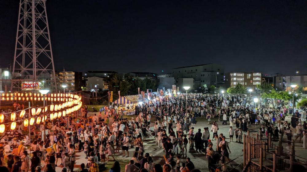 八潮音頭で盆踊り、模擬店、八潮市農産物直売所、プラレール・Nゲージ鑑賞など