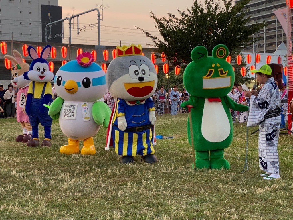 赤い提灯に彩られた会場では、ゆるキャラも登場し盛り上げました。