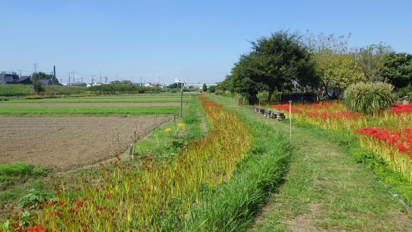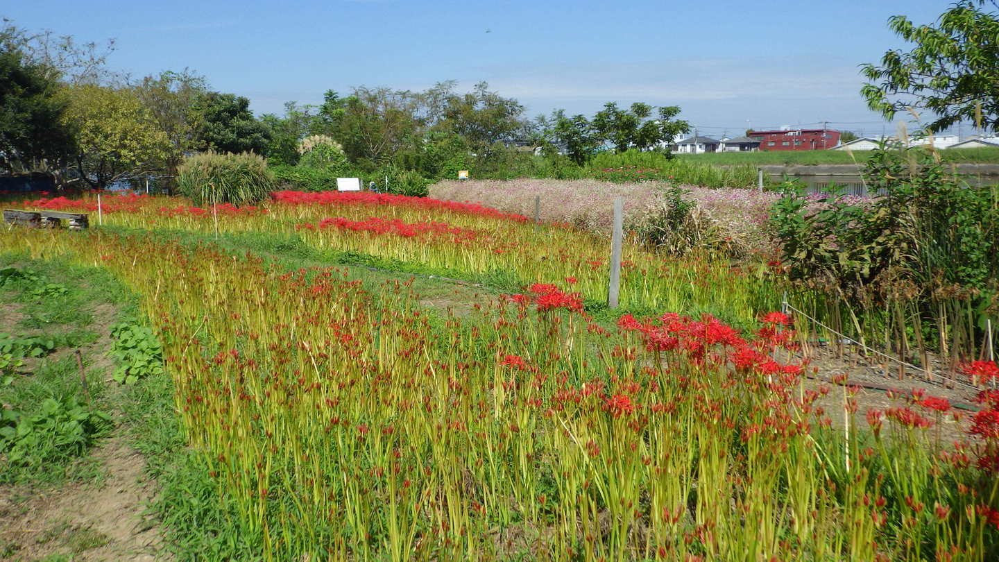 フラワーパークの彼岸花が、例年より遅れて咲き始めています。