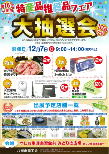 12月7日(日)に「特産品・推奨品フェア」がやしお生涯楽習館前みどりの広場で開催されました。