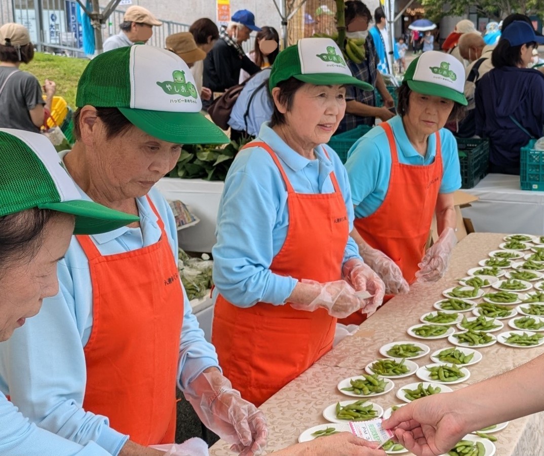 約3,500人の方が来場され、枝豆の試食会や農産物即売会、模擬店などのほか、音楽ライブやパフォーマンス、ミニゲーム『やしお えだまめ うまい』などを楽しんでいました。