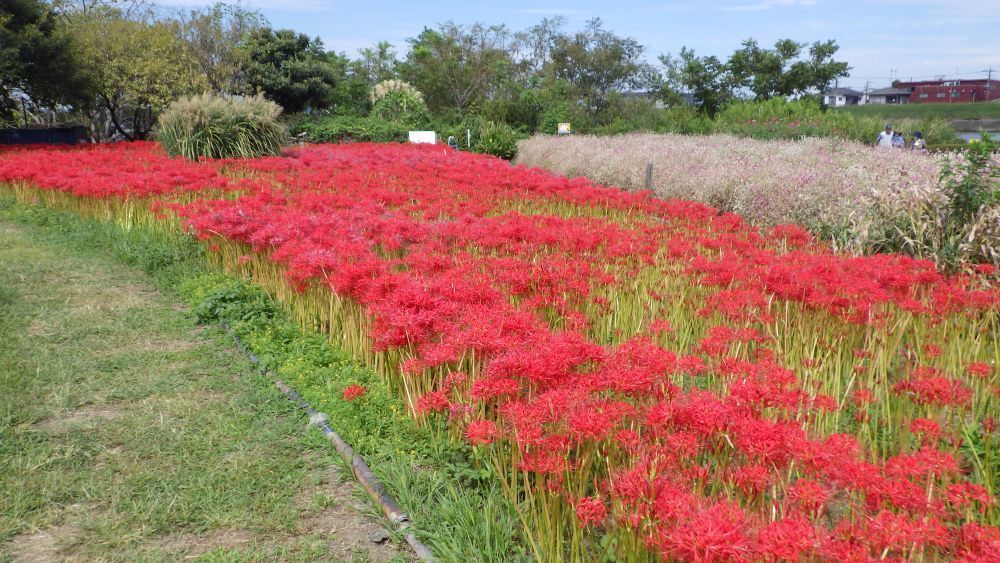 フラワーパークの彼岸花が、例年より遅れて咲き始めています。