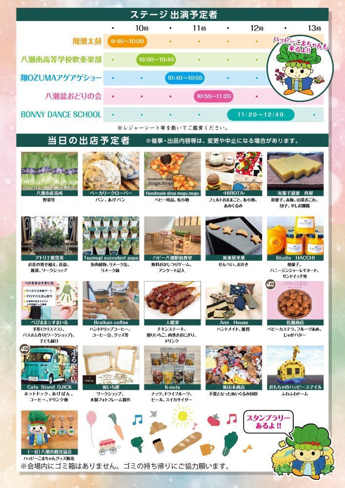 内 容:八潮産農産物および加工品、飲食物などの販売、キッチンカーなど