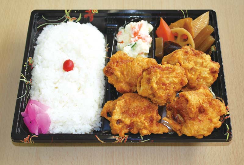 当店のお弁当メニューは約30種類ほど有ります。その中でイチオシが鳥のからあげです。一番人気メニューも鳥からあげ弁当です。鳥肉を自家製ダレに漬け込み味付けしているので、とても美味しく又ボリュームも有り、付け合せの煮物やサラダ類は、すべて手作りです。5個より配達も承ります。