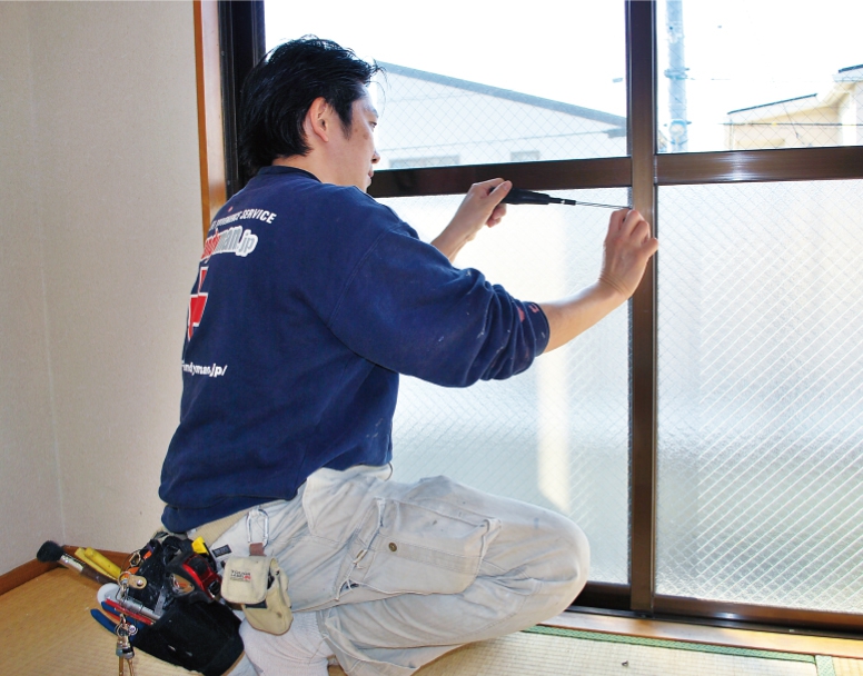 お家のちょっとした不具合、どこに頼めばいいかお困りでは無いでしょうか?例えば、蛇口から水がポタポタ漏れている、ドアノブが壊れている、扉の開閉が悪い、アミド・障子の破れ、エアコンの汚れ、草・枝切り、家具移動、耐震金具の取り付け等。ちょっとした事から小規模リフォームまでハンディマンにお任せ下さい。お客様がご用意されている商品の取り付け交換、組み立て等もおこなっております。
