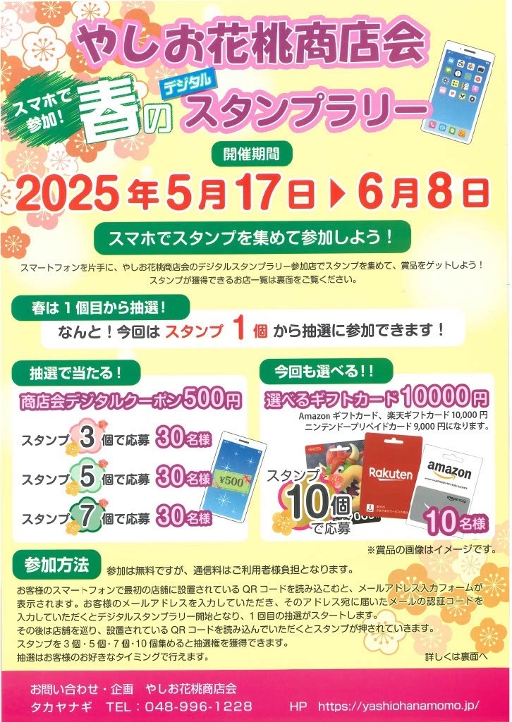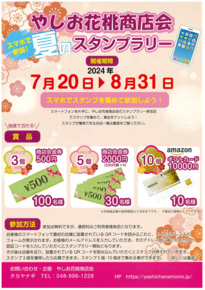 やしお花桃商店会 夏のスタンプラリーを開催します!