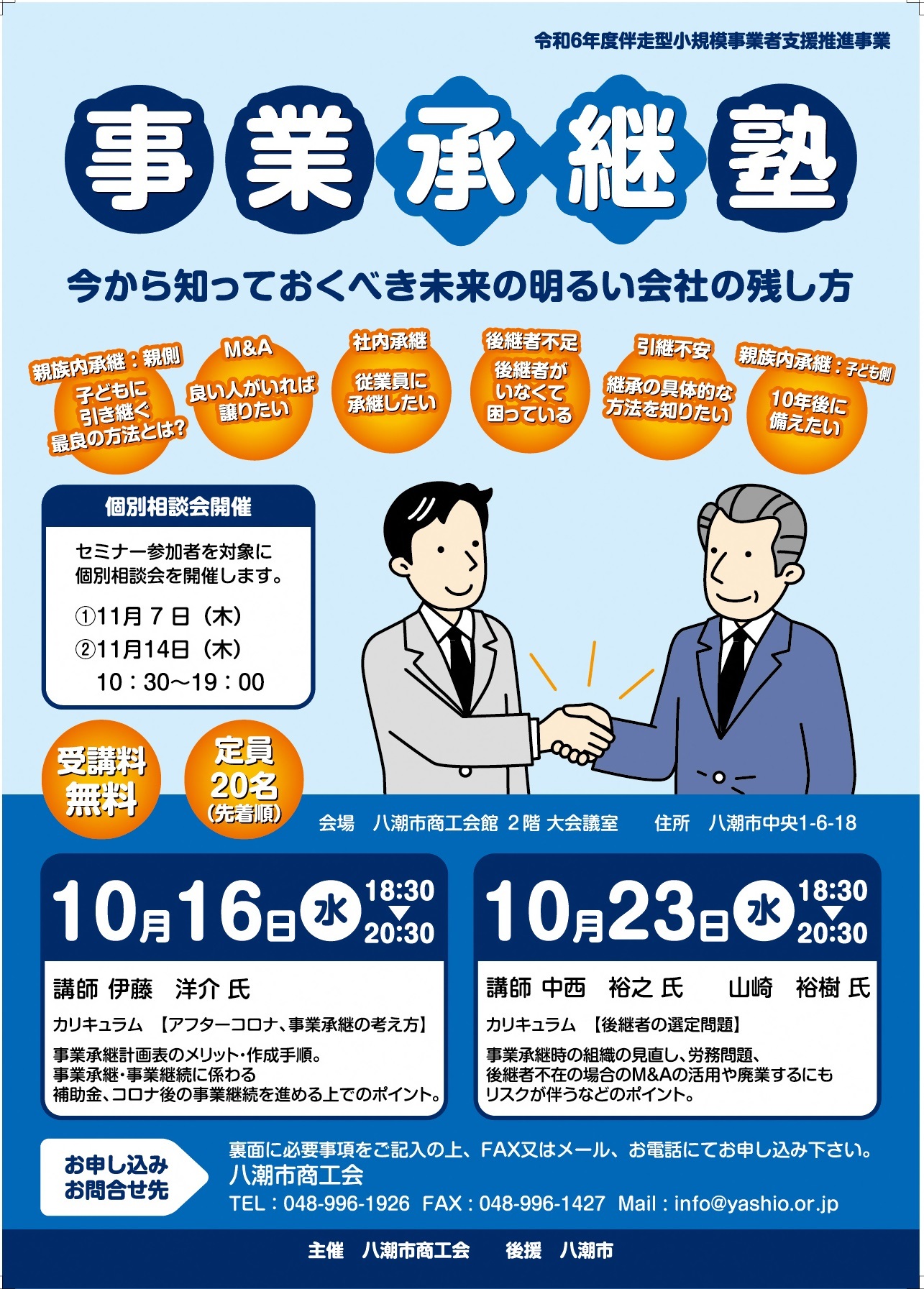また、下記の日程で、商工会主催の「事業承継塾」が開催されます。