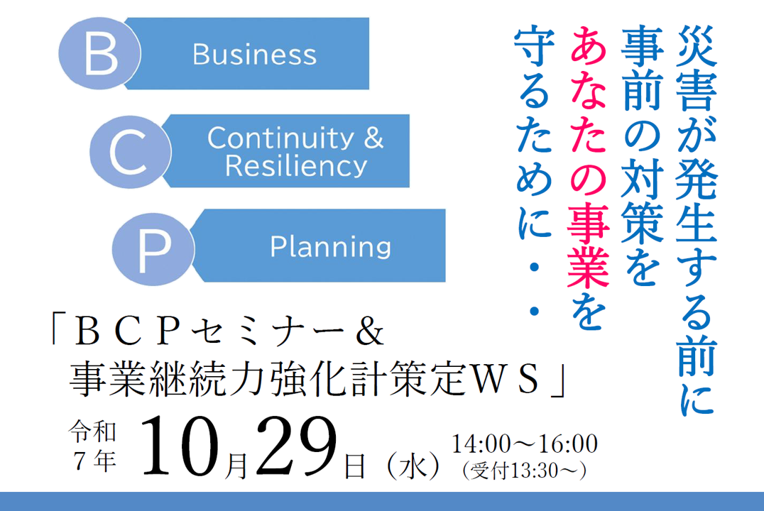 BCPセミナー&事業継続力強化計画策定ワークショップのご案内【事業者向け】(R7.9.29掲載)