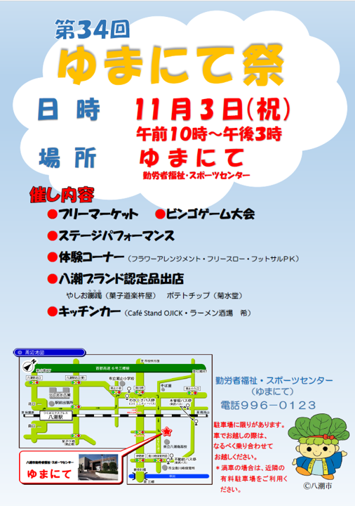 八潮市勤労者福祉・スポーツセンター(ゆまにて)にて、「ゆまにて祭」が開催されます。